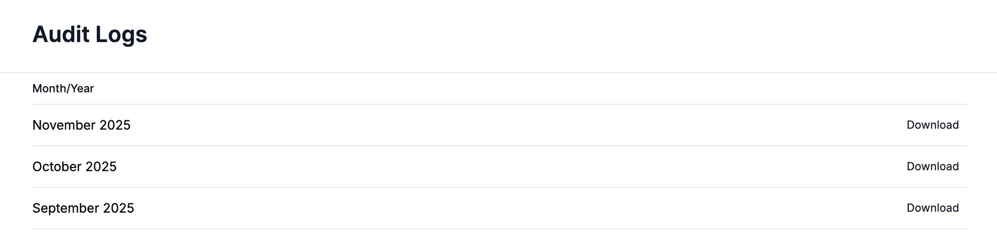 Organizations can now access their monthly audit logs directly in Console > Settings > Audit Logs.